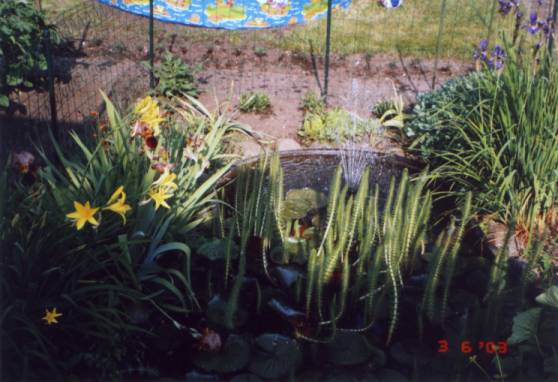 In unserem Garten darf natürlich auch der Gartenteich nicht fehlen! Zum Zeitpunkt der Aufnahme war der Teich noch mit Fischen besetzt. Mittlerweile ist auch der Letzte raus. Wahrscheinlich von den Katzen geholt.